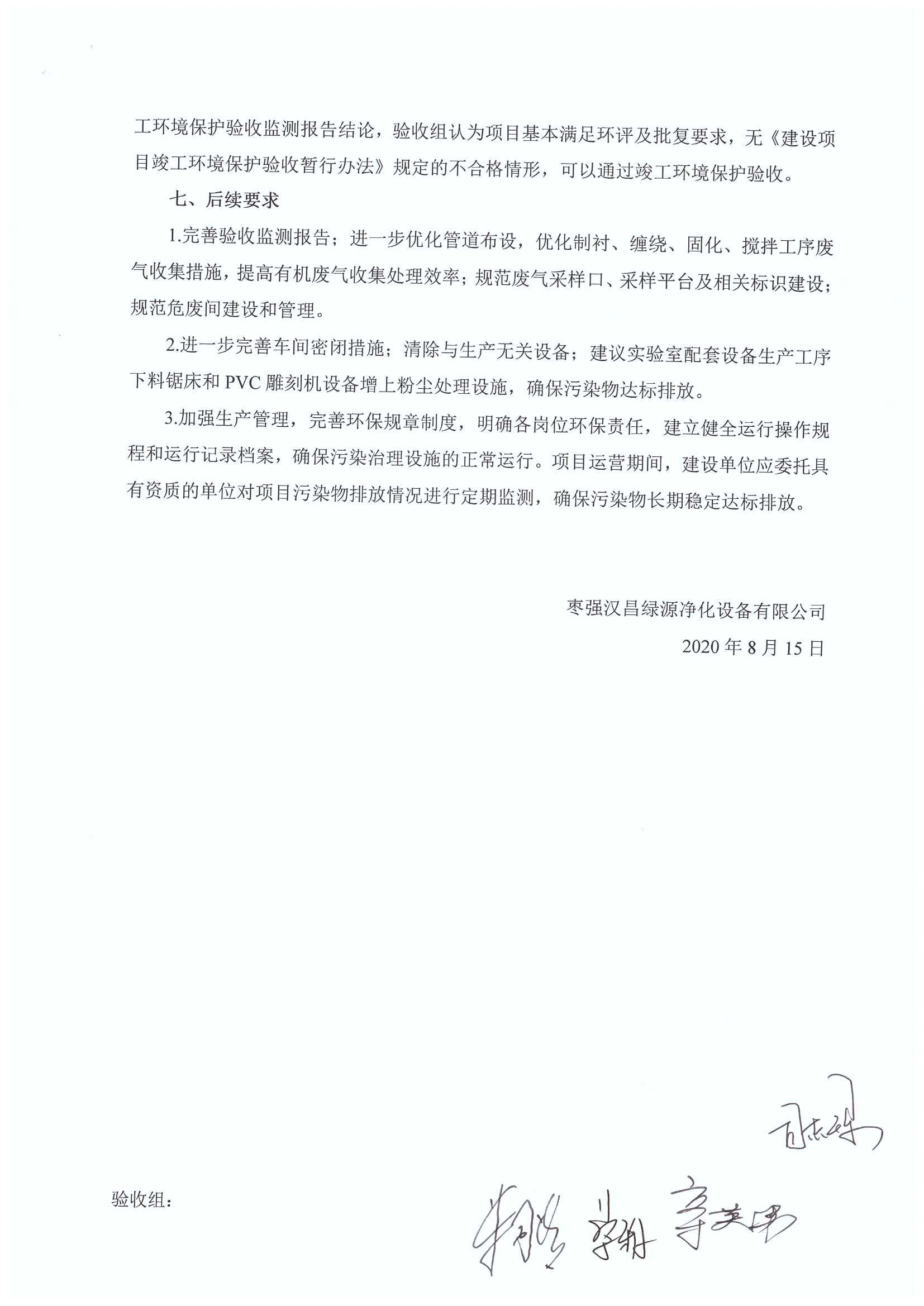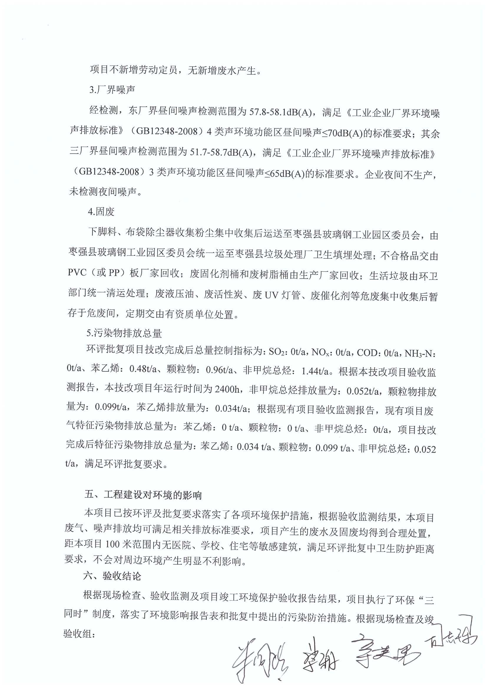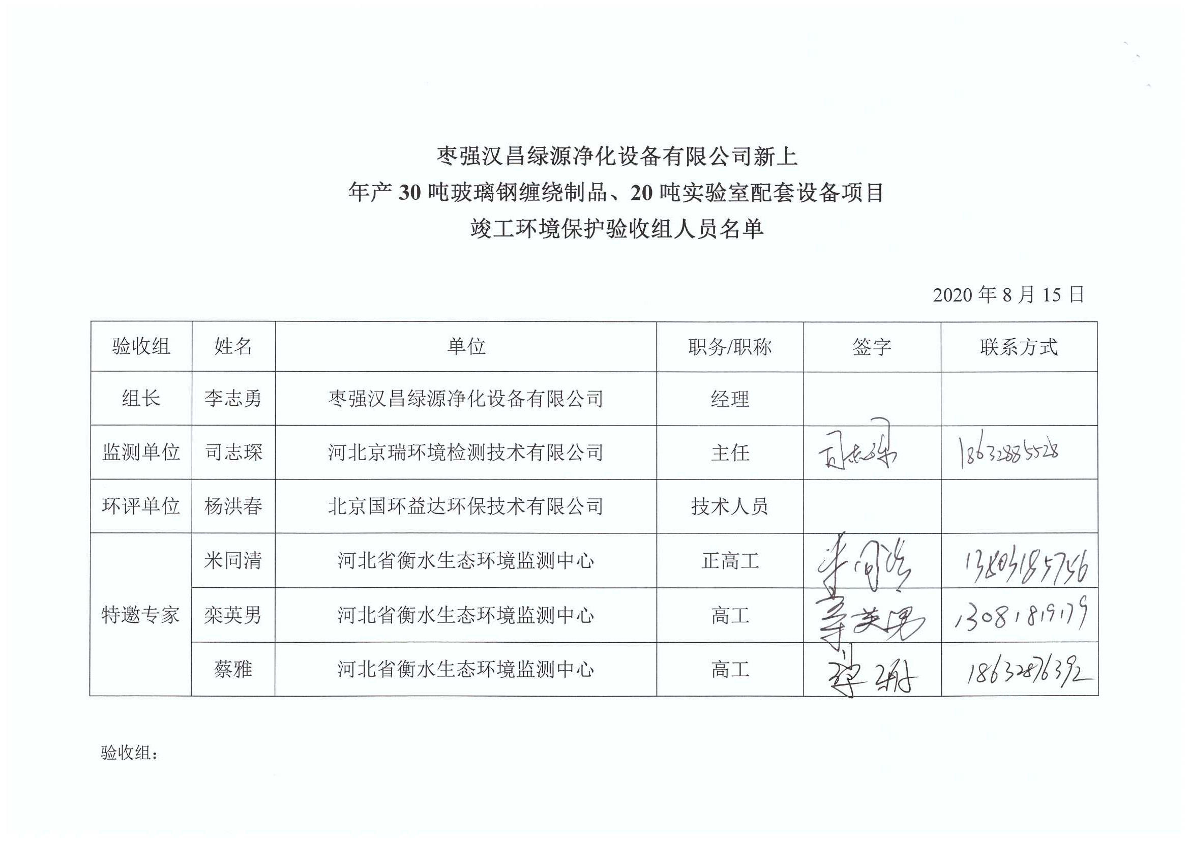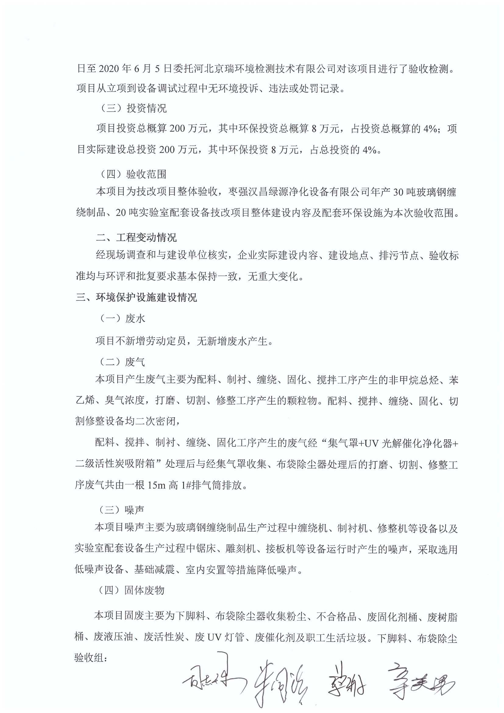 棗強漢昌綠源凈化設備有限公司年產30噸玻璃鋼纏繞制品、20噸實驗室配套設備技改項目竣工環境保護驗收意見